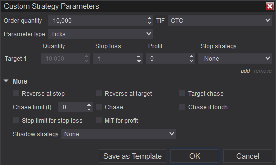 - Auto-Reverse – enables a trader to reverse position as soon as stop-loss or profit target is hit.